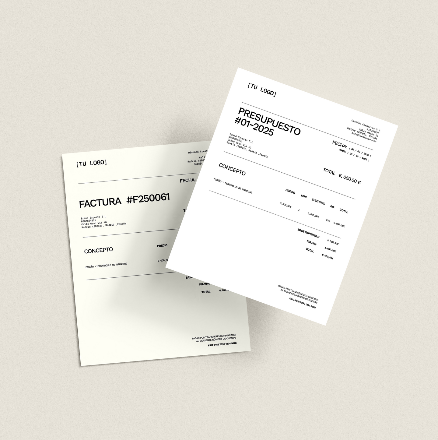 - Diseño profesional y listo para personalizar con tus datos y los de tu cliente.